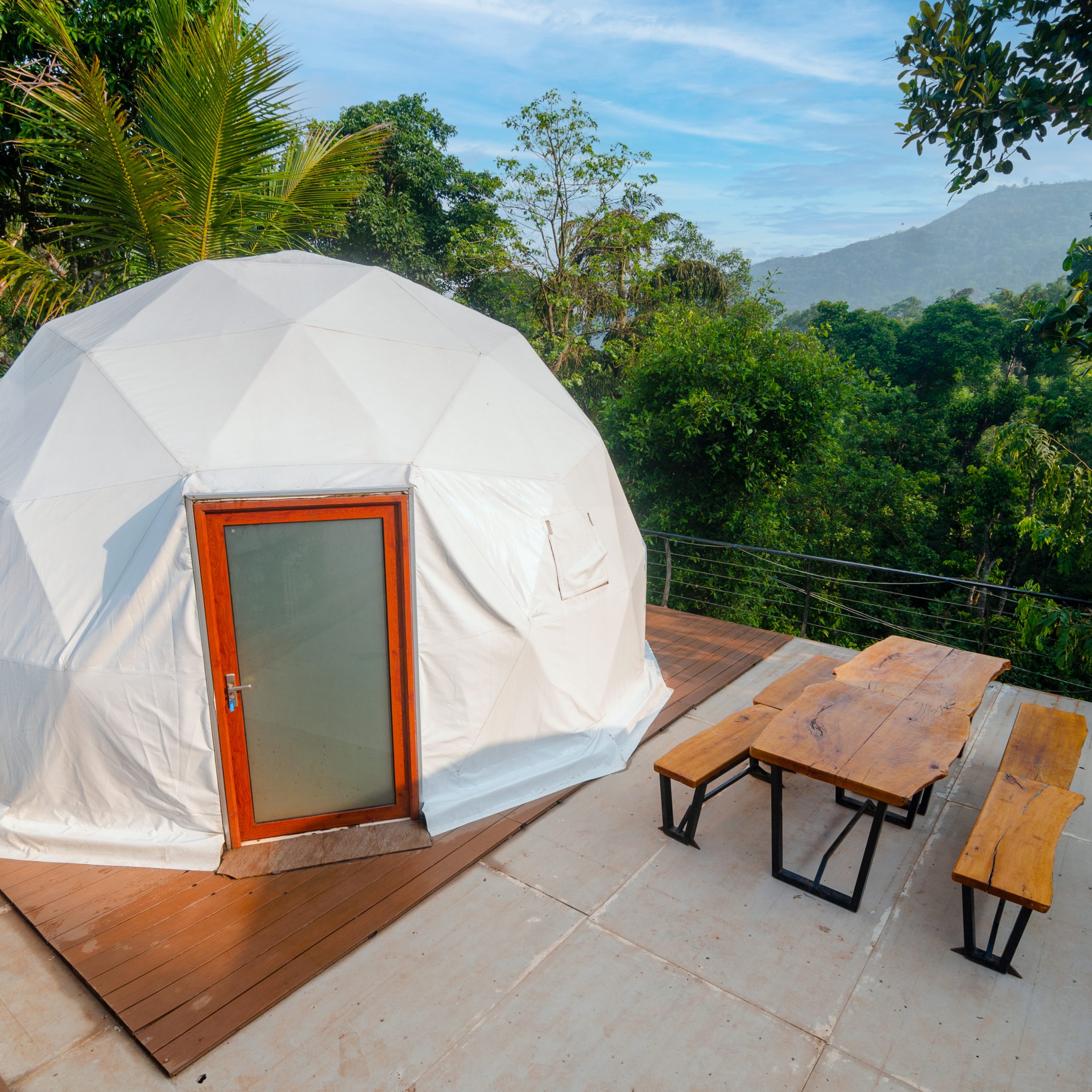 We offer a variety of accommodations, including Domes, A-frame cottages, Vintage houses, and the unique Mirror house.